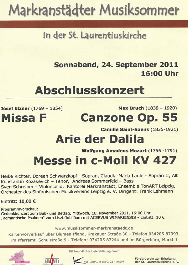 Laurentiuskirche in Markranstädt bei Leipzig. Ausführende: